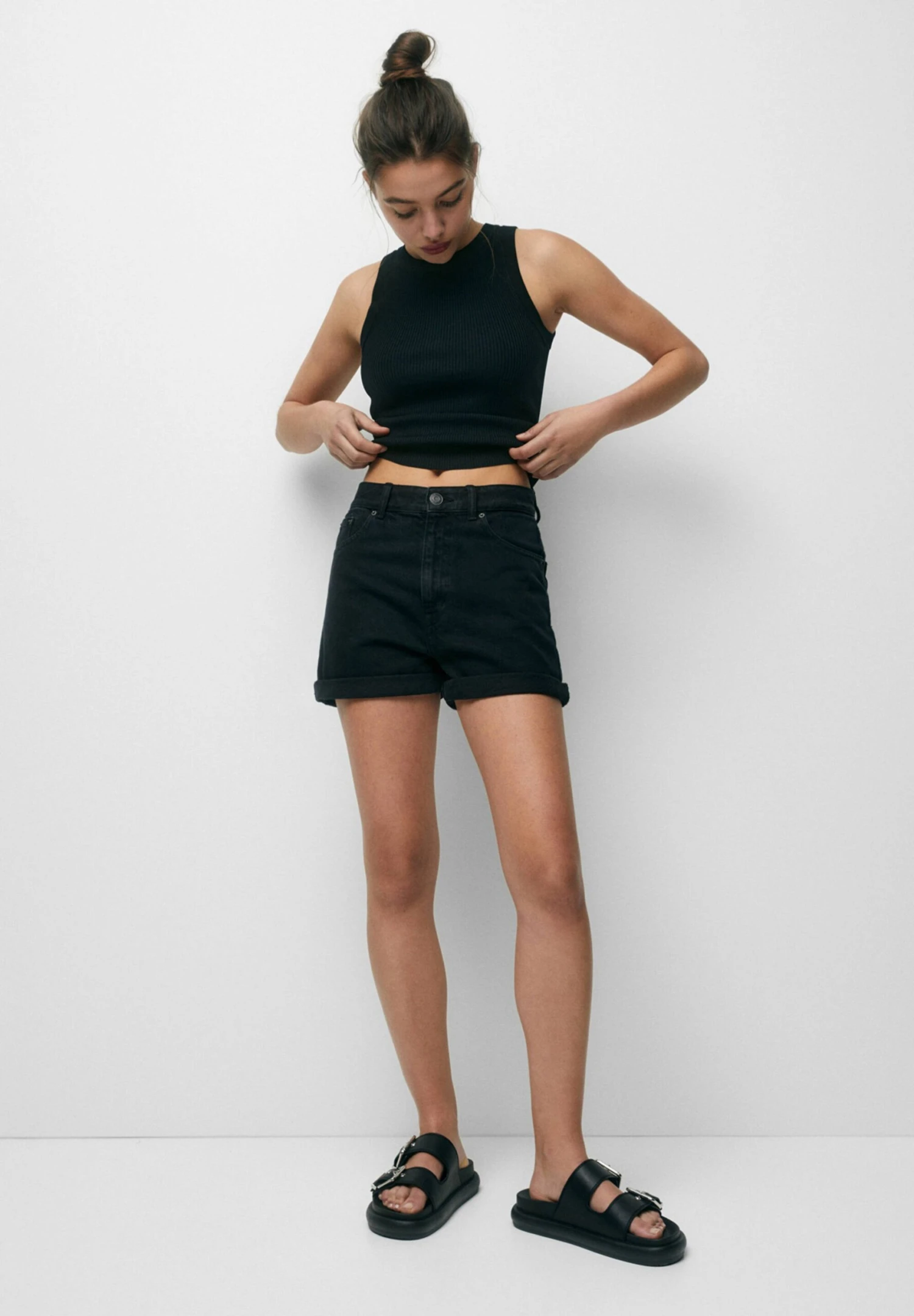 PULL & BEAR High Waist Mom Bermuda- Shorts Di Jeans – Black