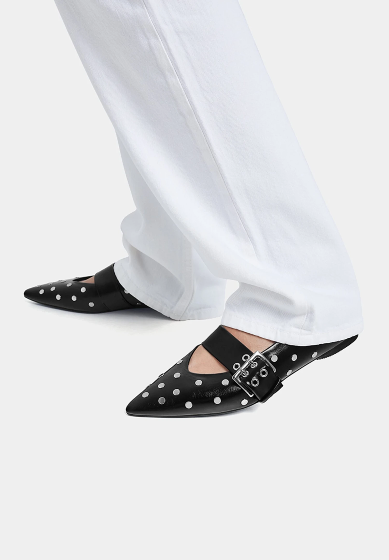 PULL & BEAR Studded Buckles – Ballerine – Black