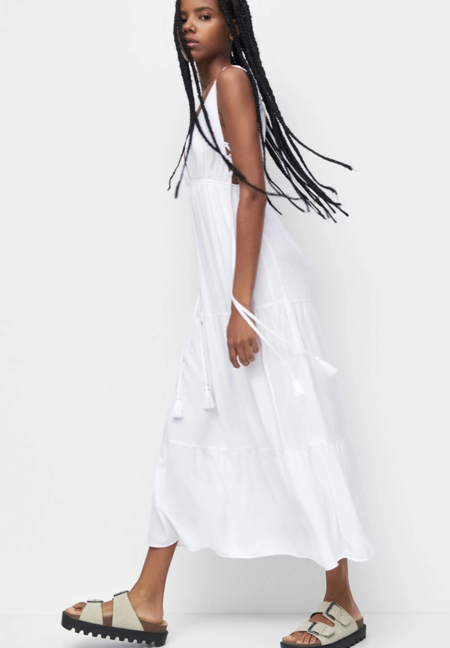 PULL & BEAR V-Neck Vestito LungoWhite Donna Vestiti PUC21C13E-A11